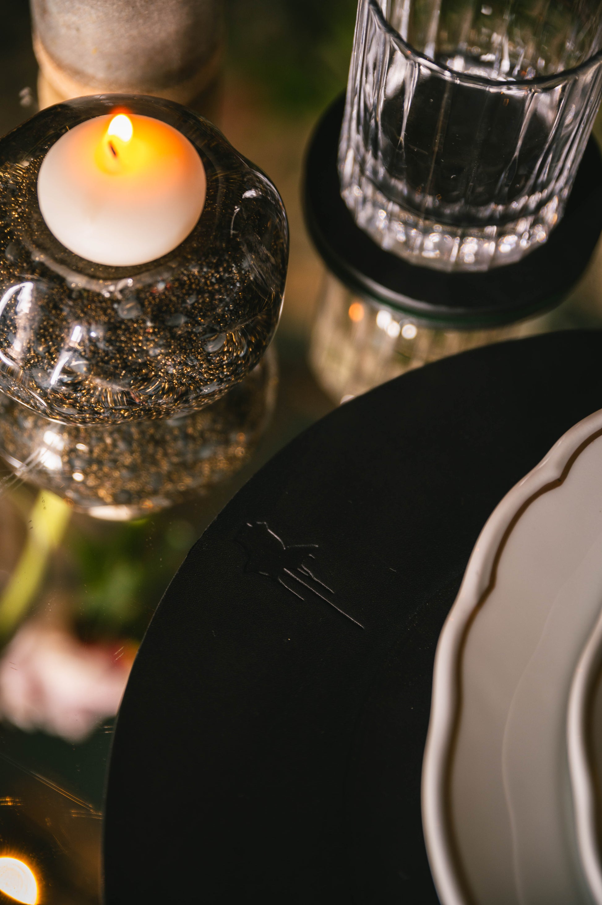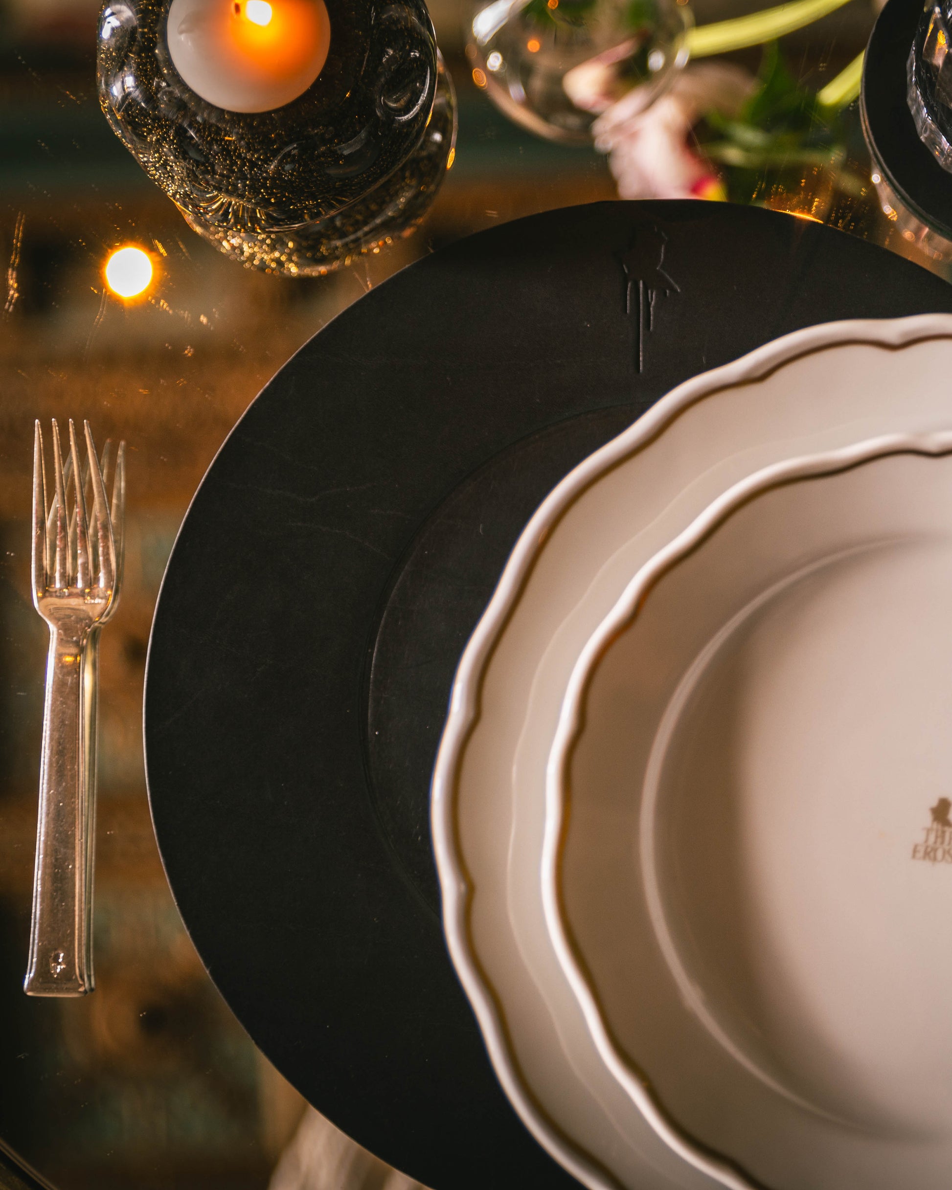 Artful foundation for elevated dining. Composed of natural veins and the embossed Erose emblem, it brings a touch of subtlety and elegance.