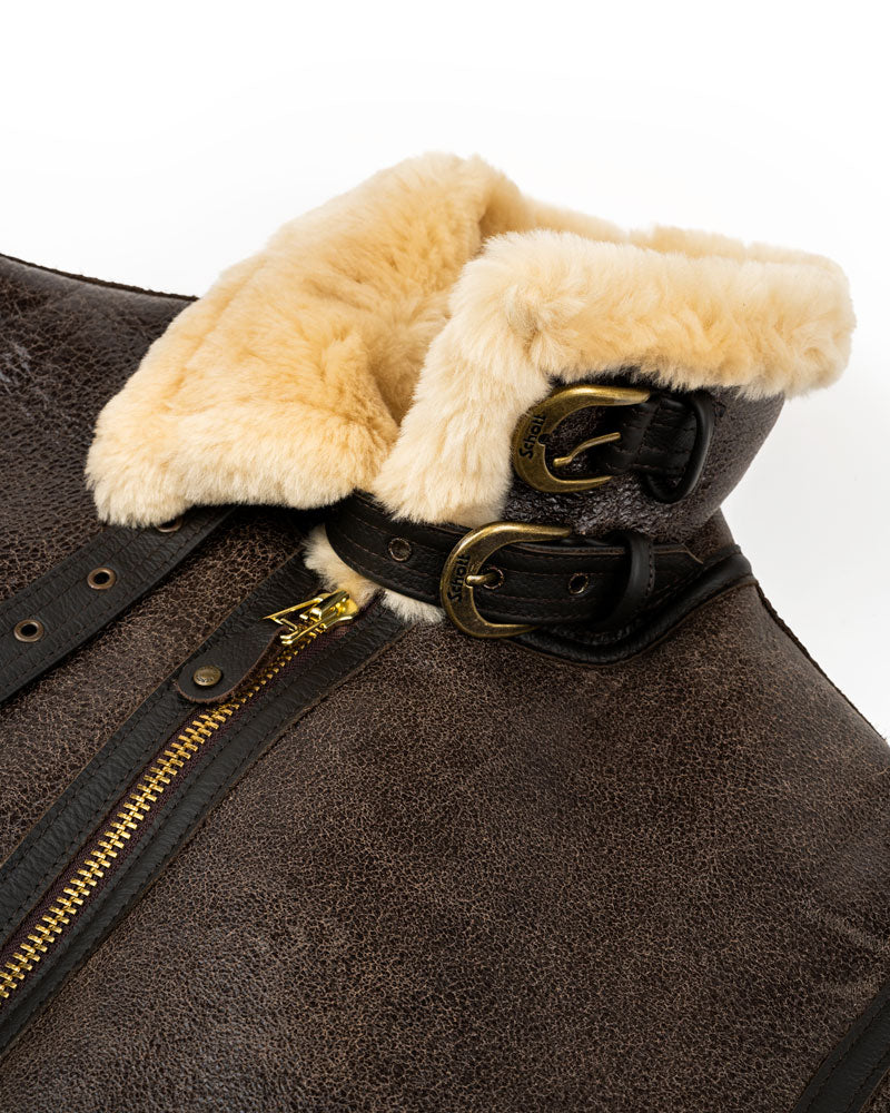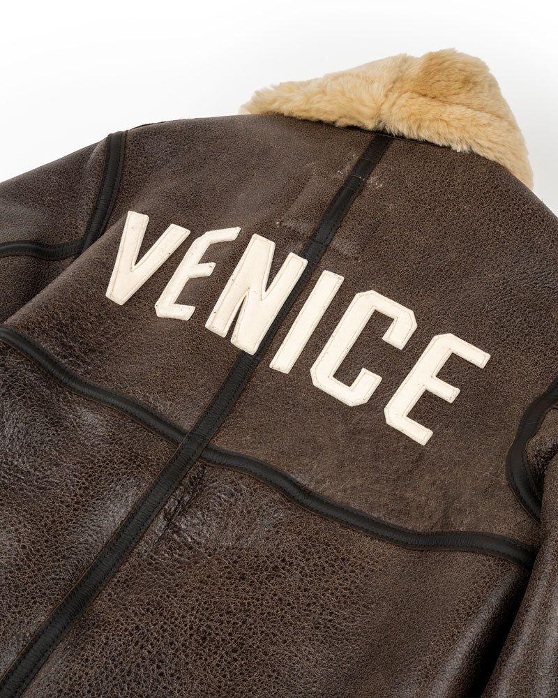 Aviation heritage gets the Venice M'Art stamp. Classic B-3 bomber in heavyweight shearling—timeless cold-weather armor with VENICE across the back.